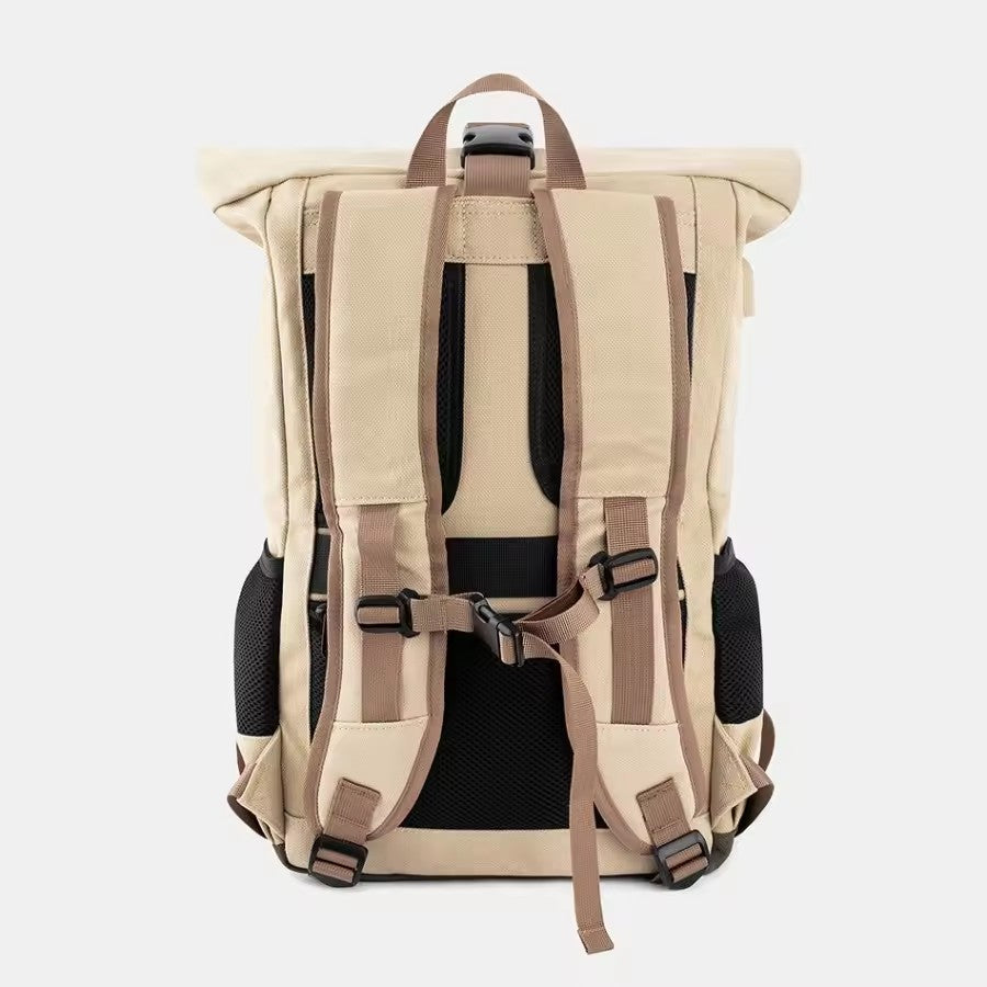 Por eso, esta mochila incluye un puerto USB lateral integrado, que te permite conectar tu batería externa en el interior y cargar tus dispositivos cómodamente desde el exterior mientras te mueves.